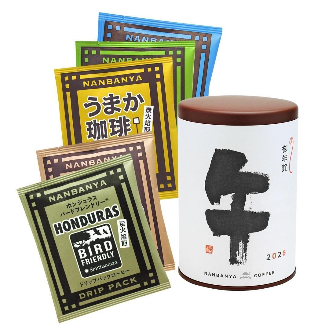 【限定商品】南蛮屋オリジナル「干支缶」入り・炭火焙煎ドリップパック&コーヒーバッグ5種アソートセット